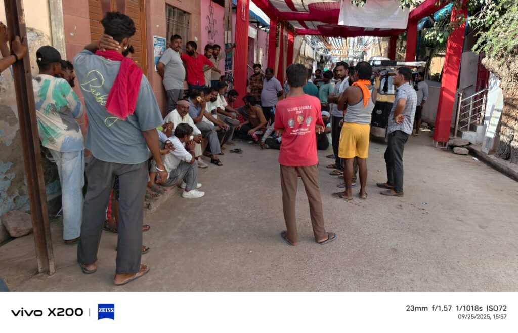 मोर्चरी के बाहर समाज के काफी संख्या में लोग इक्कठे हुए हैं।