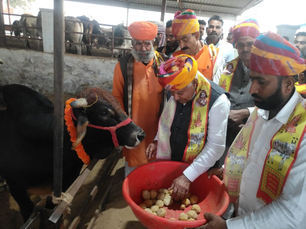 NEXT 15 दिसम्बर, 2025 श्रीडूंगरगढ़। मुख्यमंत्री भजनलाल शर्मा के जन्मदिवस के अवसर पर श्रीडूंगरगढ़ विधायक ताराचंद सारस्वत ने कोटासर स्थित श्री करणी गौ सेवा समिति (गौशाला) में पहुँचकर गौसेवा की। इस दौरान उन्होंने गौमाता को गुड़ और लापसी अर्पित कर पूजा-अर्चना की।