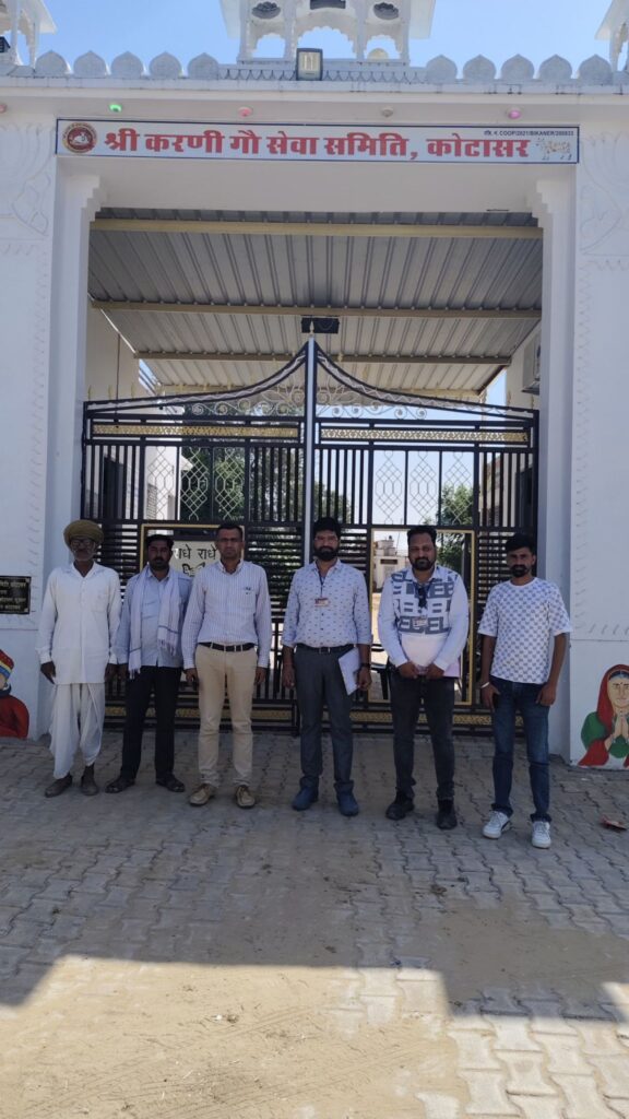 NEXT 27 सितम्बर, 2025 श्रीडूंगरगढ़। जिला कलेक्टर के निर्देश पर श्री करणी गौ सेवा समिति, कोटासर गौशाला का शुक्रवार को भौतिक सत्यापन किया गया। सत्यापन टीम में श्रीडूंगरगढ़ पंचायत समिति के विकास अधिकारी मनोज कुमार, पशु चिकित्सा अधिकारी डॉ. आशीष तंवर और डॉ. सुनील बोधिया शामिल रहे।