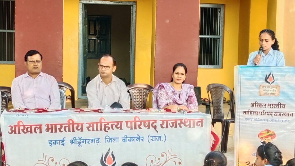NEXT 15 सितम्बर, 2025 श्रीडूंगरगढ़। अखिल भारतीय साहित्य परिषद् इकाई श्रीडूंगरगढ़ की ओर से सोमवार को राजकीय उच्च माध्यमिक विद्यालय, लिखमादेसर में हिन्दी दिवस पर कविता प्रतियोगिता हुई। इसमें 23 विद्यार्थियों ने भाग लिया।