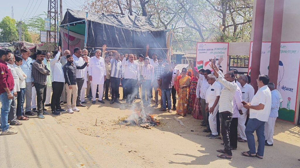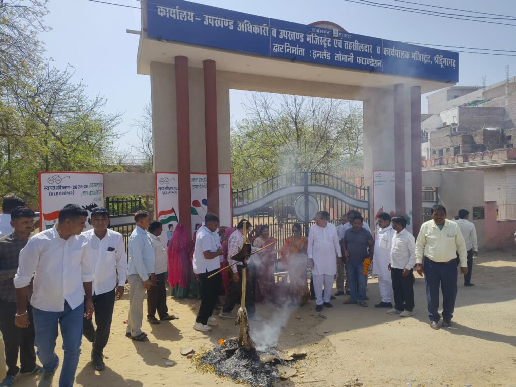 NEXT 15 मार्च, 2026 श्रीडूंगरगढ़। गैस सिलेंडर की बढ़ती कीमतों और महंगाई के विरोध में रविवार को उपखंड कार्यालय के बाहर विरोध प्रदर्शन किया गया। प्रदर्शन का नेतृत्व पूर्व विधायक मंगलाराम गोदारा ने किया। कार्यकर्ताओं ने केंद्र सरकार के खिलाफ नारेबाजी करते हुए प्रतीकात्मक रूप से प्रधानमंत्री का पुतला दहन किया।