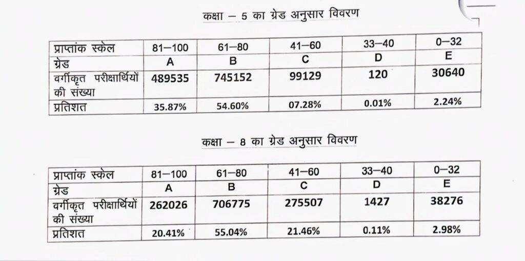 कक्षा 5 की परीक्षा 20 फरवरी से 6 मार्च के बीच राज्यभर के 18,621 केंद्रों पर आयोजित हुई। इसमें 13.68 लाख से अधिक विद्यार्थियों ने भाग लिया, जिनमें से 13.33 लाख से ज्यादा विद्यार्थी उत्तीर्ण हुए। कुल परीक्षा परिणाम 97.75% रहा, जो पिछले साल से 0.28% अधिक है।