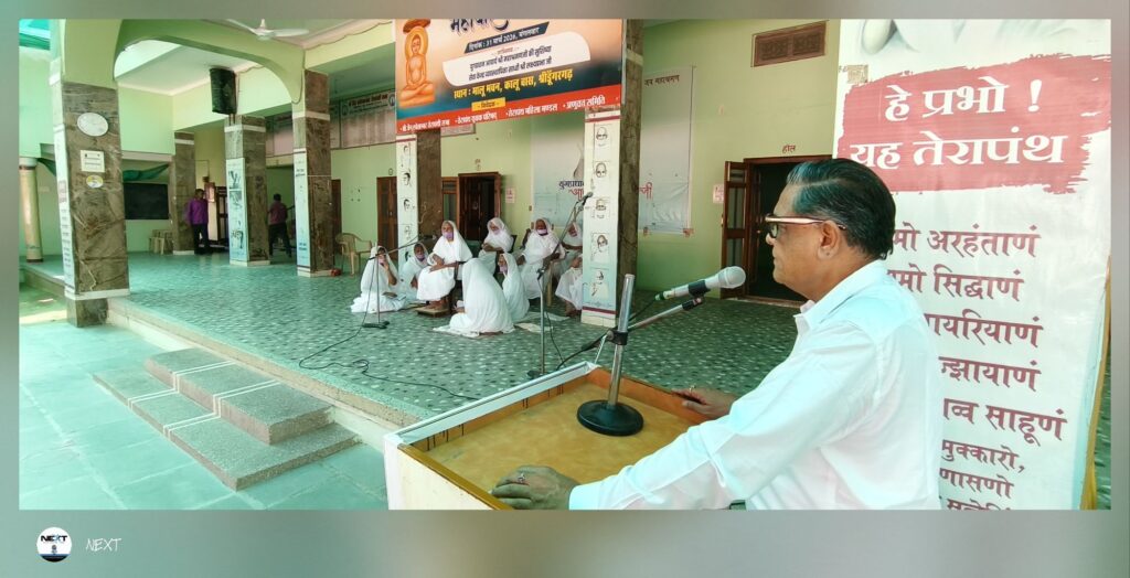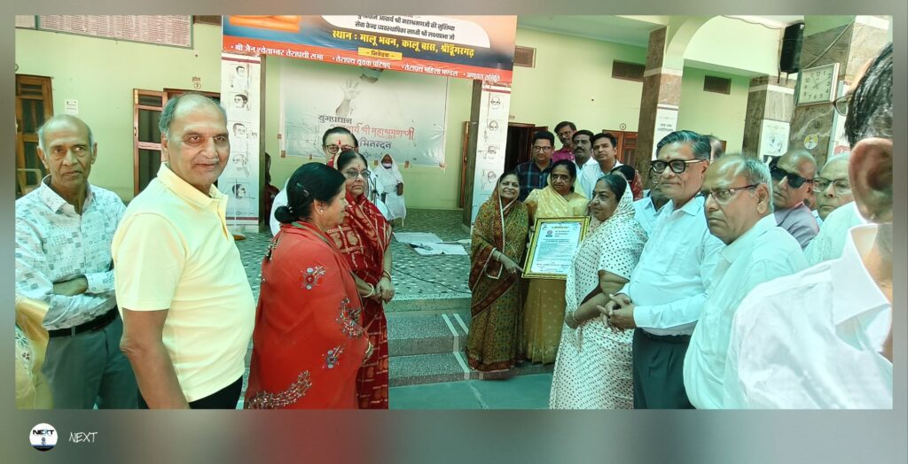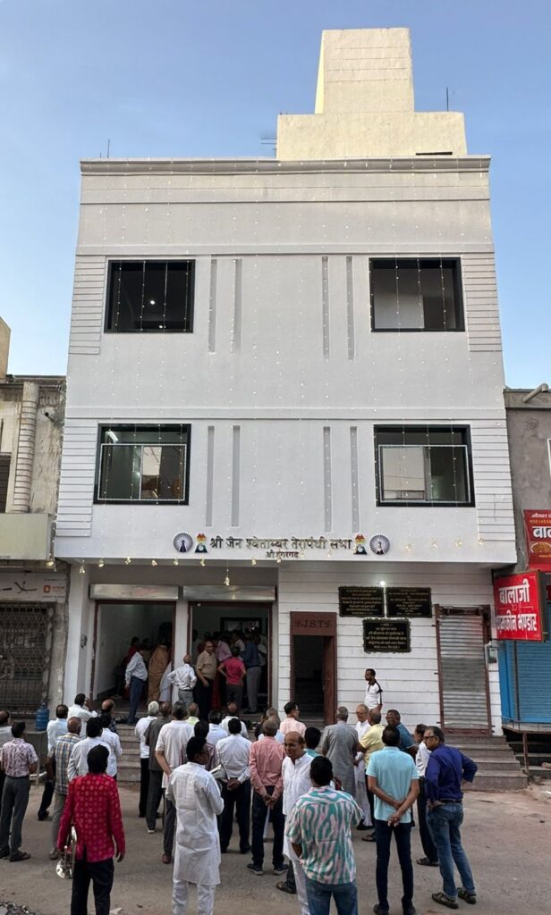 NEXT 23 अप्रैल, 2026 श्रीडूंगरगढ़। श्री जैन श्वेतांबर तेरापंथी सभा के पुनर्निर्मित सभा भवन का लोकार्पण गुरुवार सुबह 6:30 बजे गणमान्य नागरिकों की उपस्थिति में जैन संस्कार विधि से सम्पन्न हुआ। साध्वी लक्ष्यप्रभा ने सहवर्ती साध्वियों के साथ पहुँचकर मंगलपाठ सुनाया। इसके बाद सुबह 9 बजे साध्वी सेवा केंद्र मालू भवन में भव्य समारोह आयोजित किया गया।