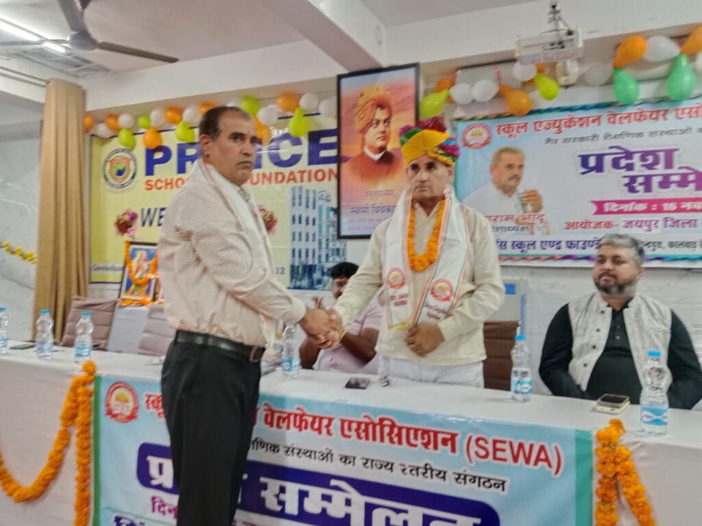 NEXT 18 नवम्बर, 2025 श्रीडूंगरगढ़। स्कूल एज्युकेशन वेलफेयर एसोसिएशन (सेवा) राजस्थान का प्रादेशिक सम्मेलन सोमवार को पिन्स रेजीडेंसी सीनियर सेकेंडरी स्कूल में भव्य रूप से आयोजित हुआ। सम्मेलन की अध्यक्षता संगठन के प्रदेशाध्यक्ष कोडाराम भादू ने की। कार्यक्रम में विशिष्ट अतिथि के रूप में डी. शशि कुमार (जनरल सेक्रेटरी, KAMC-Convener APSI, नई दिल्ली), नीति शोध एवं आउटरीच संस्था फोर सिविल सोसाइटी से नितिश आनन्द तथा भविष्य निधि विभाग के सेवानिवृत्त सहायक आयुक्त मुकेश जैन मौजूद रहे। मुख्य अतिथि मृदला सामवेदी थीं।
