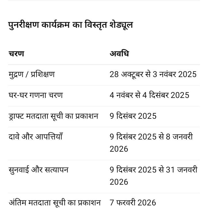 NEXT 28 अक्टूबर, 2025 श्रीडूंगरगढ़। भारत निर्वाचन आयोग ने मतदाता सूची को पूरी तरह पारदर्शी और अद्यतन बनाने के उद्देश्य से देशभर में विशेष गहन पुनरीक्षण कार्यक्रम शुरू किया है। बिहार में यह अभियान पहले से जारी है, जबकि अब अंडमान-निकोबार, छत्तीसगढ़, गोवा, गुजरात, केरल, लक्षद्वीप, मध्यप्रदेश, पुडुचेरी, राजस्थान, तमिलनाडु, उत्तरप्रदेश और पश्चिम बंगाल में भी यह कार्यक्रम शुरू हो गया है।