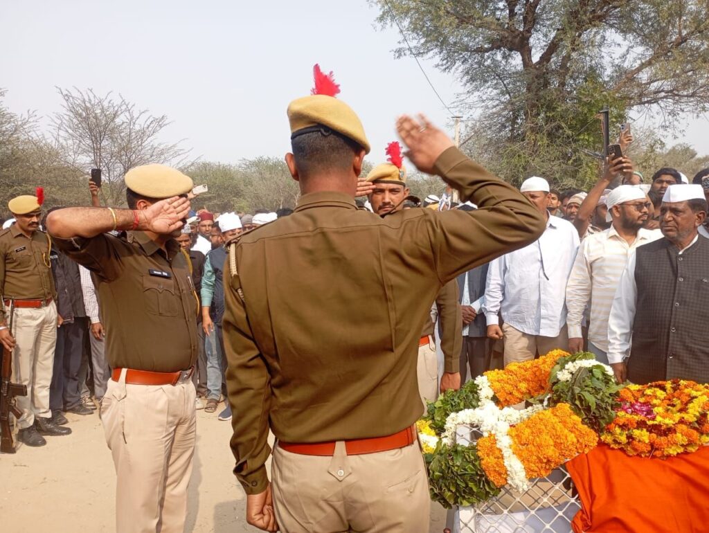 पुलिस गार्ड दल के जवानों ने फायर कर तथा हथियार झुकाकर दिवंगत को अंतिम सलामी दी।