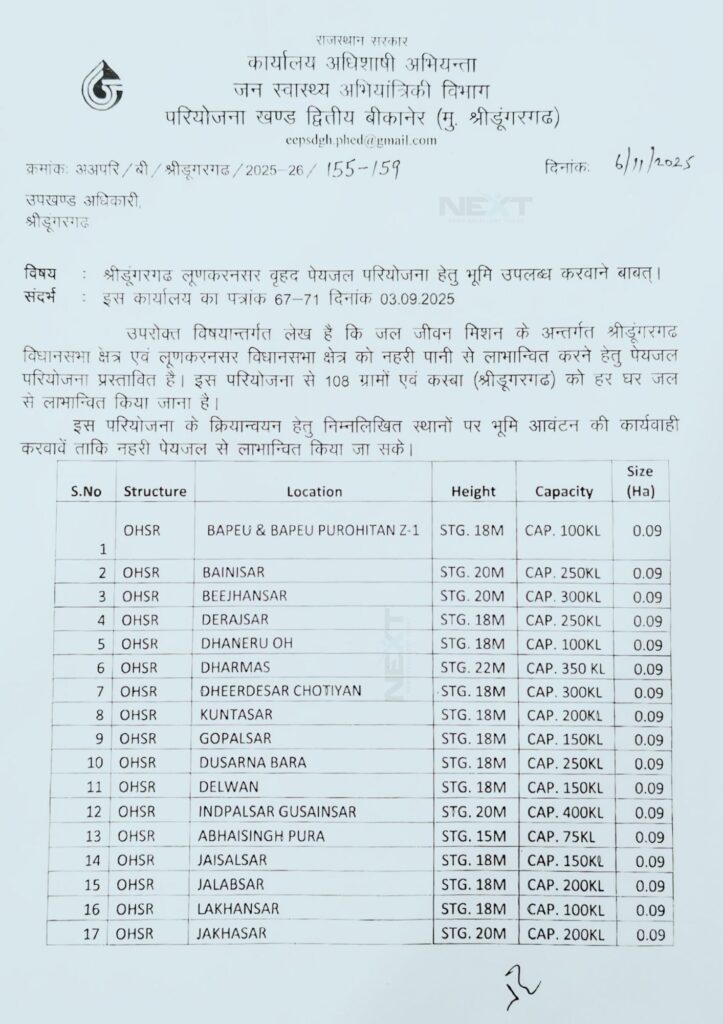 श्रीडूंगरगढ़: हर घर तक पहुँचेगा मीठा नहरी पानी, 108 गाँवों और कस्बे के लिए 663 करोड़ की ऐतिहासिक परियोजना का वर्क ऑर्डर जारी, कस्बे के लिए 80 करोड़ की योजना भी जल्द लेगी आकार