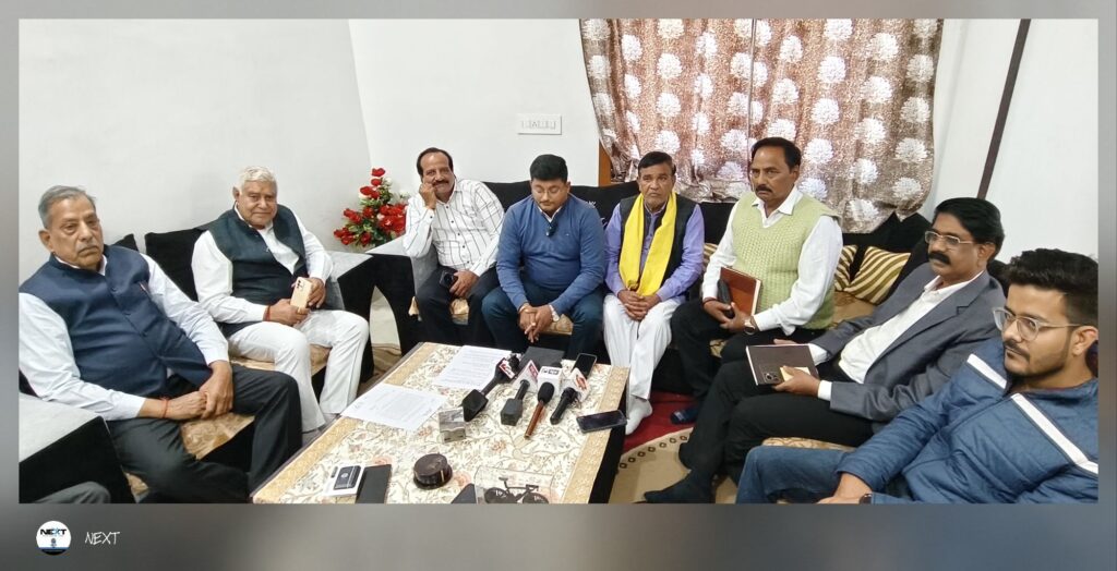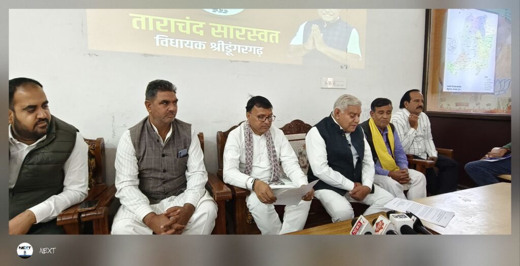 प्रेस वार्ता में जानकारी देते विधायक ताराचन्द सारस्वत और साथ में मौजूद भाजपा नेता