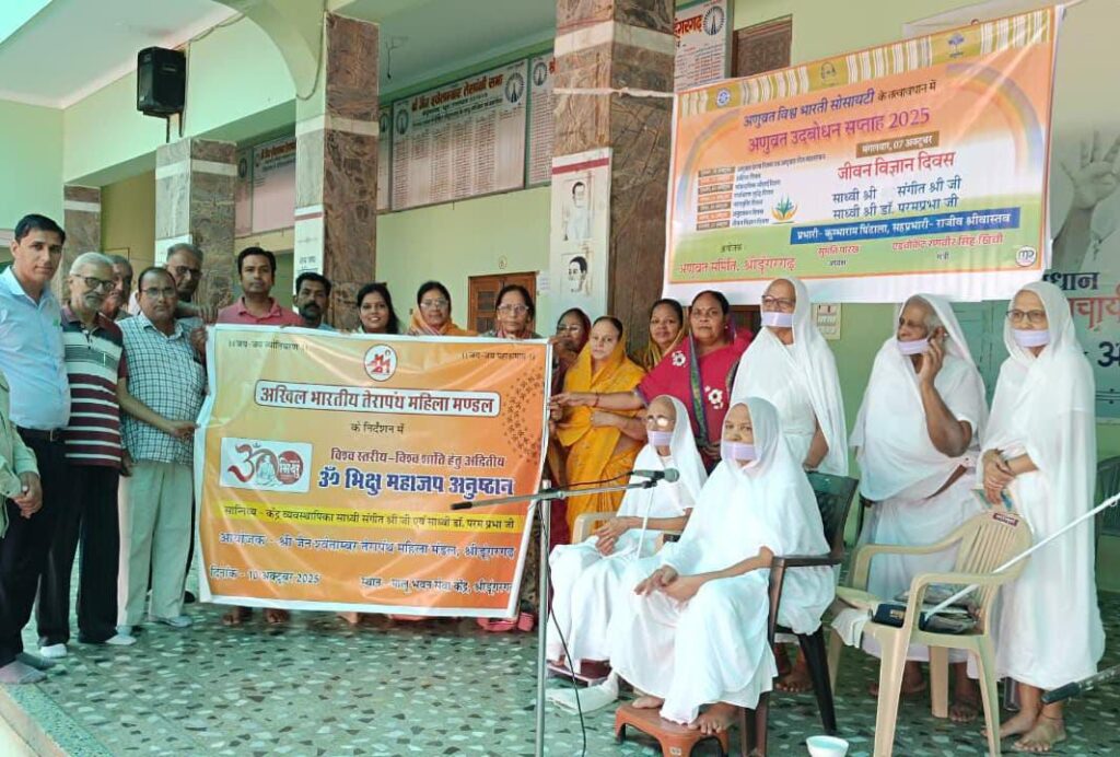 NEXT 7 अक्टूबर, 2025 श्रीडूंगरगढ़। अखिल भारतीय तेरापंथ महिला मंडल के निर्देशन में तेरापंथ महिला मंडल, श्रीडूंगरगढ़ की ओर से मंगलवार को ॐ भिक्षु जप महायज्ञ अनुष्ठान के बैनर का अनावरण किया गया। कार्यक्रम में बड़ी संख्या में श्रावक समाजजन, सभा संस्थाओं के पदाधिकारी और महिला मंडल की सदस्याएं उपस्थित रहीं।