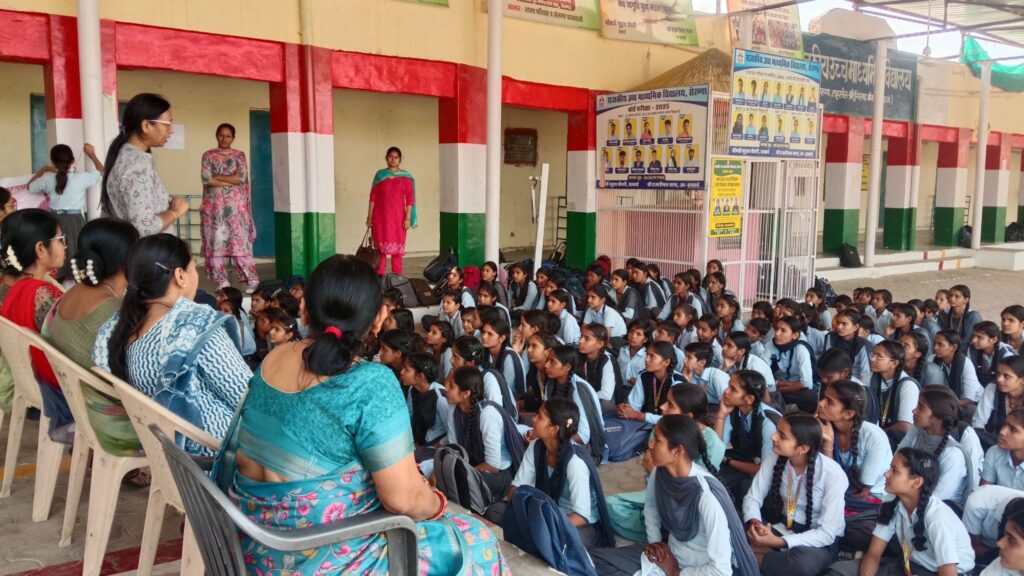 सुपरवाइजर किरण जोशी ने माहवारी स्वच्छता पर चर्चा करते हुए छात्राओं को मासिक धर्म के दौरान साफ-सफाई रखने और स्वास्थ्य संबंधी सावधानियां अपनाने के लिए प्रेरित किया।