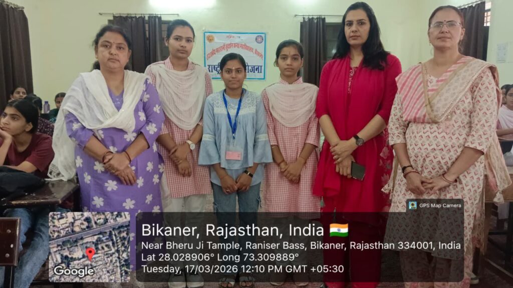 NEXT 17 मार्च, 2026 श्रीडूंगरगढ़। राजकीय महारानी सुदर्शन कन्या महाविद्यालय, बीकानेर में मंगलवार को राजस्थान दिवस समारोह के तहत राष्ट्रीय सेवा योजना (एनएसएस) इकाइयों द्वारा ‘राजस्थान को जानो’ प्रश्नोत्तरी प्रतियोगिता का आयोजन किया गया। कार्यक्रम राज्य सरकार के निर्देशानुसार साप्ताहिक आयोजनों की श्रृंखला में आयोजित किया गया।