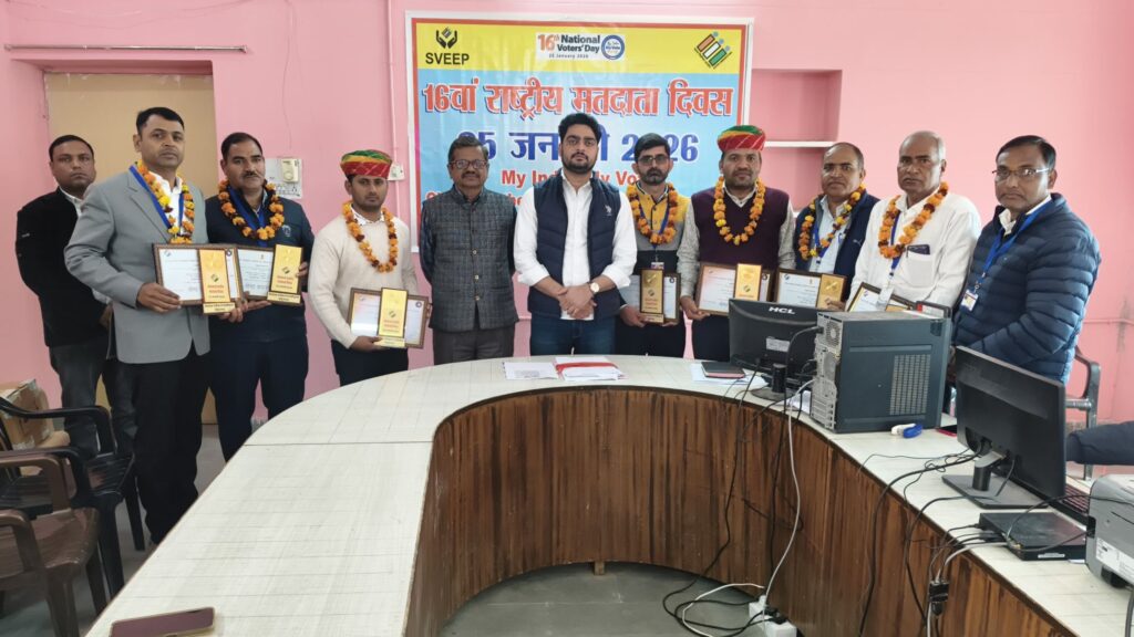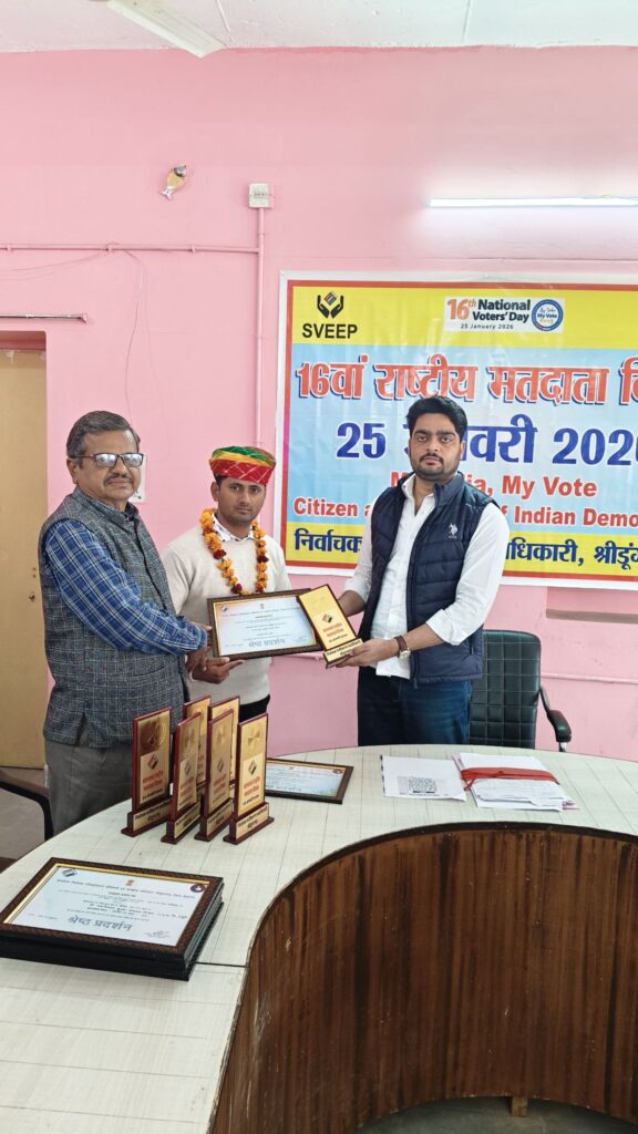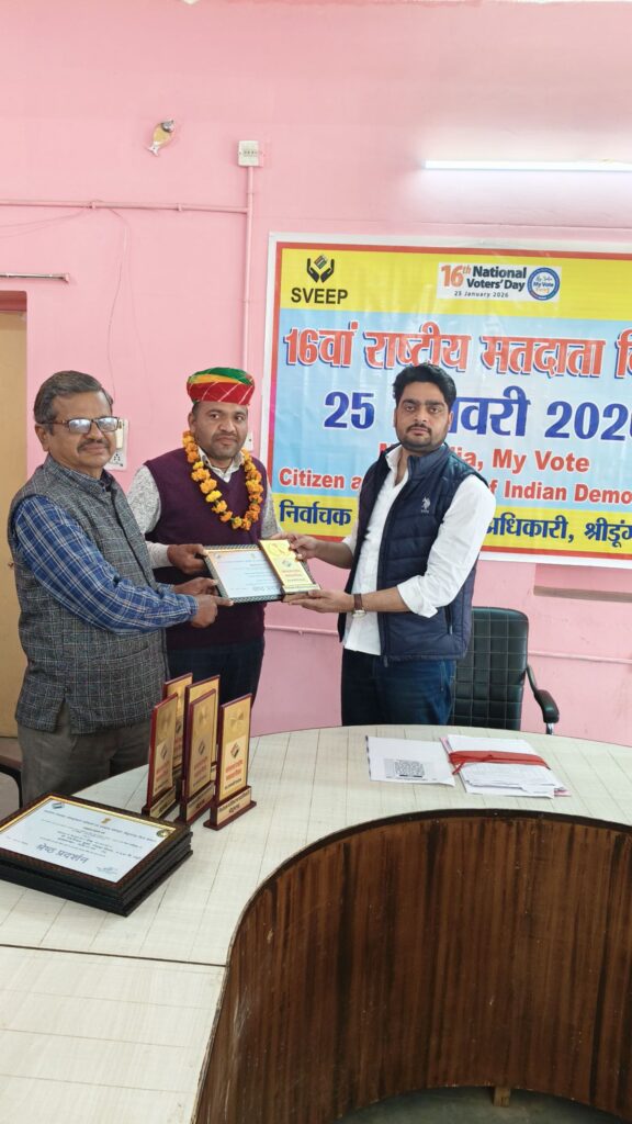 NEXT 25 जनवरी, 2026 श्रीडूंगरगढ़। 16वें राष्ट्रीय मतदाता दिवस के अवसर पर उपखण्ड कार्यालय सभागार में उपखण्ड स्तरीय कार्यक्रम का आयोजन किया गया। कार्यक्रम का आयोजन मुख्य निर्वाचन अधिकारी, राजस्थान के निर्देशानुसार किया गया।