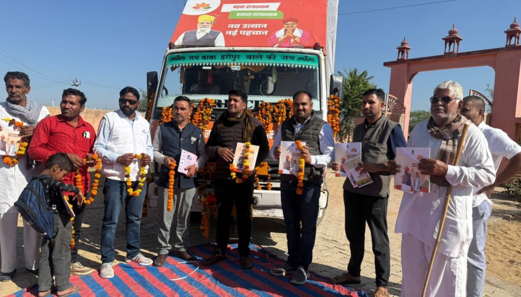 जैसलसर पहुँचा भाजपा का विकास रथ, ग्रामीणों ने किया स्वागत