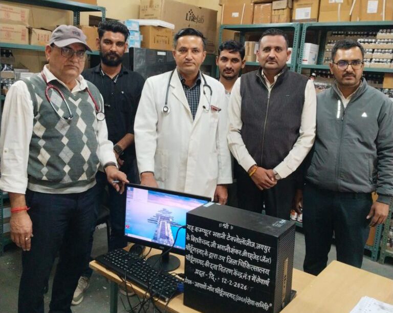 NEXT 12 फरवरी, 2026 श्रीडूंगरगढ़। उप जिला चिकित्सालय श्रीडूंगरगढ़ के दवा वितरण केंद्र पर रोजाना बड़ी संख्या में मरीजों के आने और दवा पर्चियों के पंजीकरण कार्य को देखते हुए कंप्यूटर की आवश्यकता महसूस की जा रही थी। इसी को ध्यान में रखते हुए भवानी टेक्नोलॉजीज, जयपुर के बिरधीचंद भवानी शंकर छाजेड़ (जैन) ने एक कंप्यूटर भेंट किया।