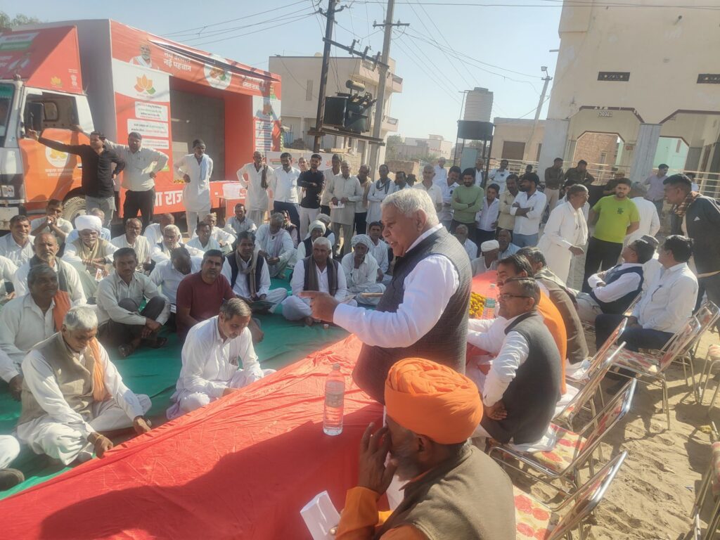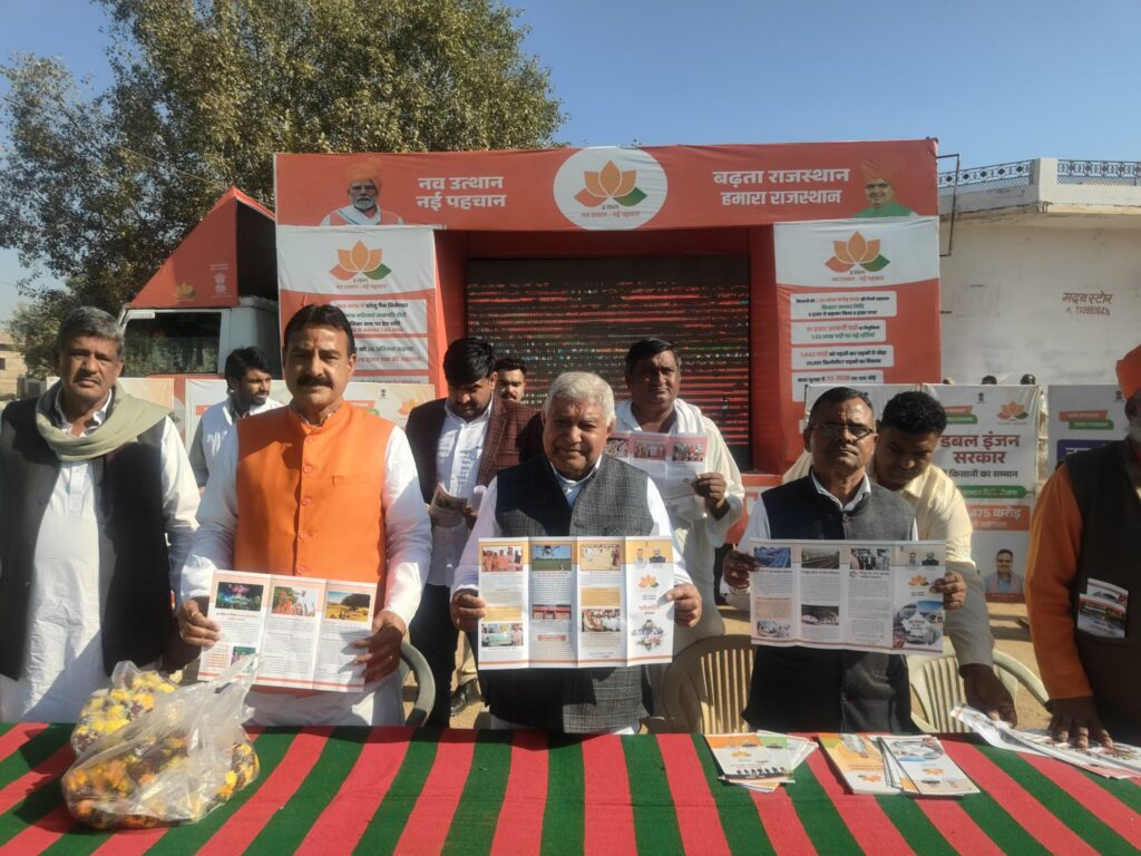 अभियान के दौरान विधायक सारस्वत के साथ भाजपा पदाधिकारी गांव-गांव और ढाणी-ढाणी पहुंचे। उन्होंने आमजन से सीधा संवाद कर मुख्यमंत्री भजन लाल शर्मा के नेतृत्व में प्रदेश सरकार द्वारा किए गए विकास कार्यों और जनकल्याणकारी योजनाओं की जानकारी दी। इस दौरान पेम्पलेट के माध्यम से सरकार की उपलब्धियां घर-घर तक पहुंचाई गईं।
