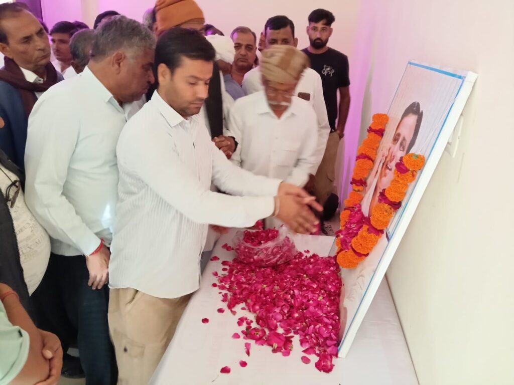 NEXT 14 दिसम्बर, 2025 श्रीडूंगरगढ़। ग्राम पंचायत मुख्यालय शेरेरा परिसर में सरपंच प्रतिनिधि स्वर्गीय भागीरथ गोदारा को भावभीनी श्रद्धांजलि दी गई। श्रद्धांजलि सभा में आसपास के गांवों से आए जनप्रतिनिधियों, पंचायतकर्मियों और ग्रामीणों ने पुष्पांजलि अर्पित कर दो मिनट का मौन रखा।