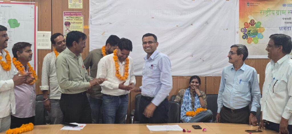 इस अवसर पर विकास अधिकारी (बीडीओ) मनोज धायल ने सभी पदाधिकारियों को बधाई देते हुए निष्ठा और समर्पण के साथ कर्तव्य निर्वहन करने की प्रेरणा दी। कार्यक्रम में सहायक विकास अधिकारी गोपाल प्रसाद शर्मा, गिरधारीदास स्वामी सहित ब्लॉक के सभी ग्राम विकास अधिकारी मौजूद रहे।