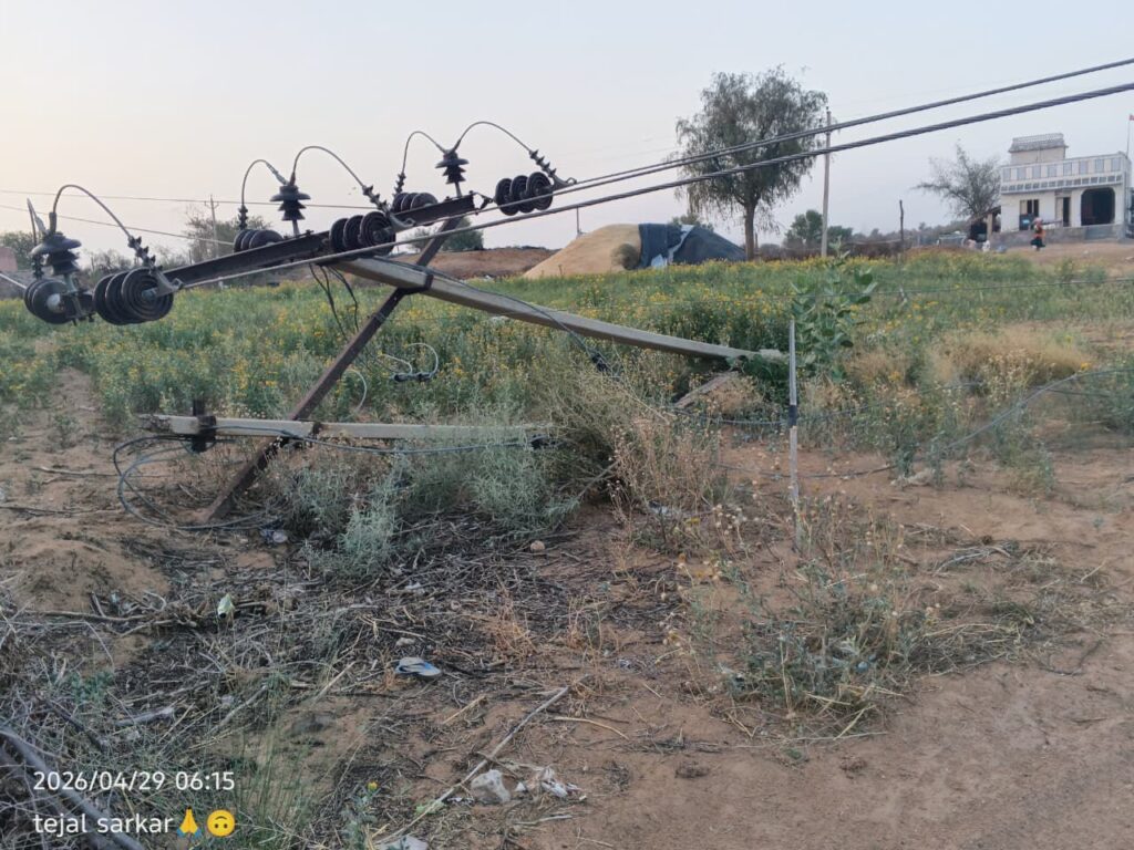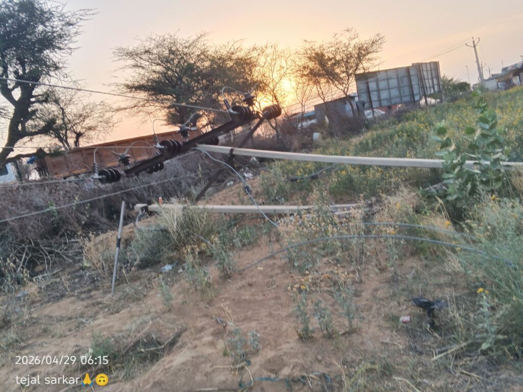 जानकारी के अनुसार, राजू होटल के पास 33 केवी उच्च क्षमता की बिजली लाइन के पोल गिरकर धराशाई हो गए, जिससे पूरे जीएसएस की बिजली सप्लाई बंद हो गई। इसके चलते सातलेरा गांव के साथ-साथ इससे जुड़े अन्य गांव, औद्योगिक क्षेत्र और कृषि कुओं की बिजली भी ठप पड़ी है।
