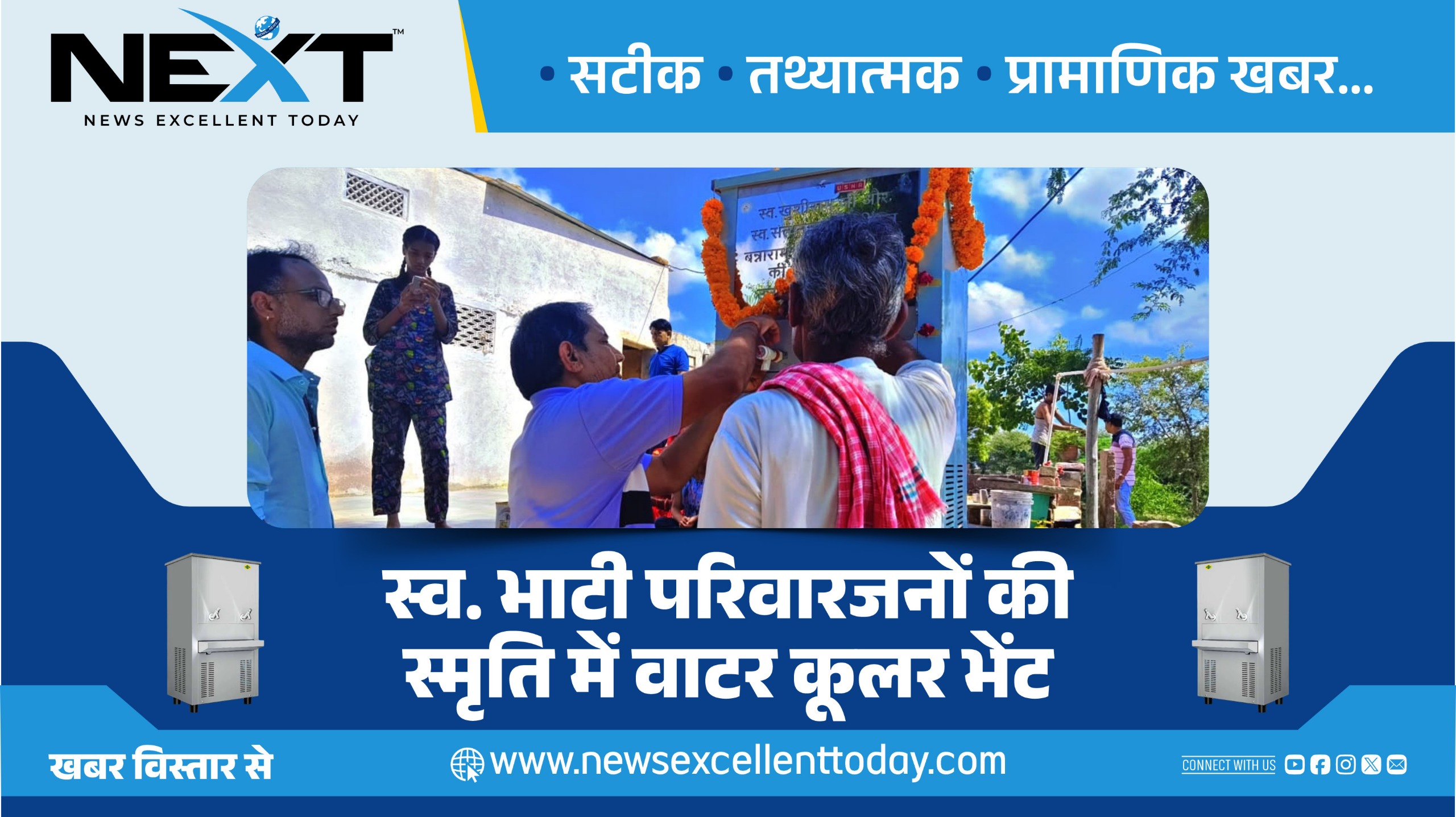 NEXT 17 सितम्बर, 2025 श्रीडूंगरगढ़। स्व. बन्नाराम, स्व. खुशीराम व स्व. सत्यनारायण सिंगराज भाटी की स्मृति में भाटी परिवार ने मंगलवार को लूणनाथजी की बगीची में वाटर कूलर भेंट किया।
